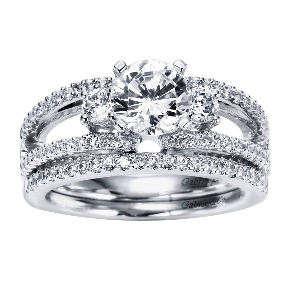 3 Carat Three Stone Round Diamond Bridal Set Engagement ...
